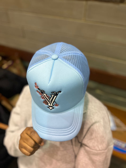 Trucker Hat - Sky Blue Cherry Blossom